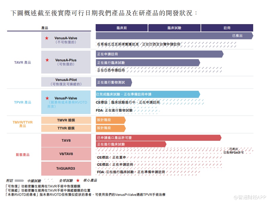 公司成立于2009年,主要从事经导管心脏瓣膜产品的设计、开发及商业化。公司产品及在研产品为经导管植入而设计,以代替出现主要与主动脉瓣狭窄及反流以及肺动脉、二尖瓣及三尖瓣反流有关的功能障碍的心脏瓣膜(即TAVR、TPVR、TMVR以及TTVR)。根据弗若斯特沙利文报告,按2018年TAVR产品植入量计,公司在中国的市场份额为79.3%。