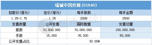 智通财经APP获悉,11月11日,瑞诚中国传媒(01640)配售结束。配售招股价区间为1.25-1.75港元,最终定价1.25港元,每手2500港元。