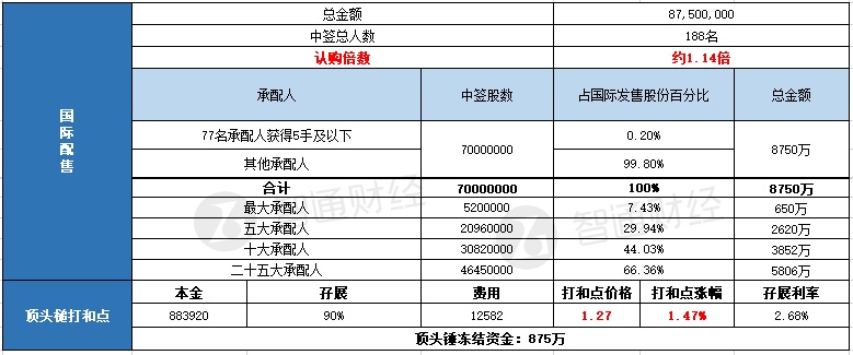 国际配售申购人数未披露,认购倍数约1.14倍。