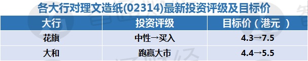 一、各大行对理文造纸(02314)最新投资评级及目标价