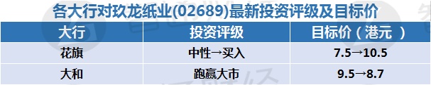 二、各大行对玖龙纸业(02689)最新投资评级及目标价