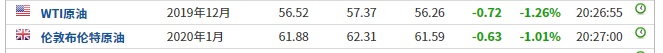 截至发稿,WTI原油跌1.26%,报56.52美元/桶。布伦特原油跌1.01%,报61.88美元/桶。