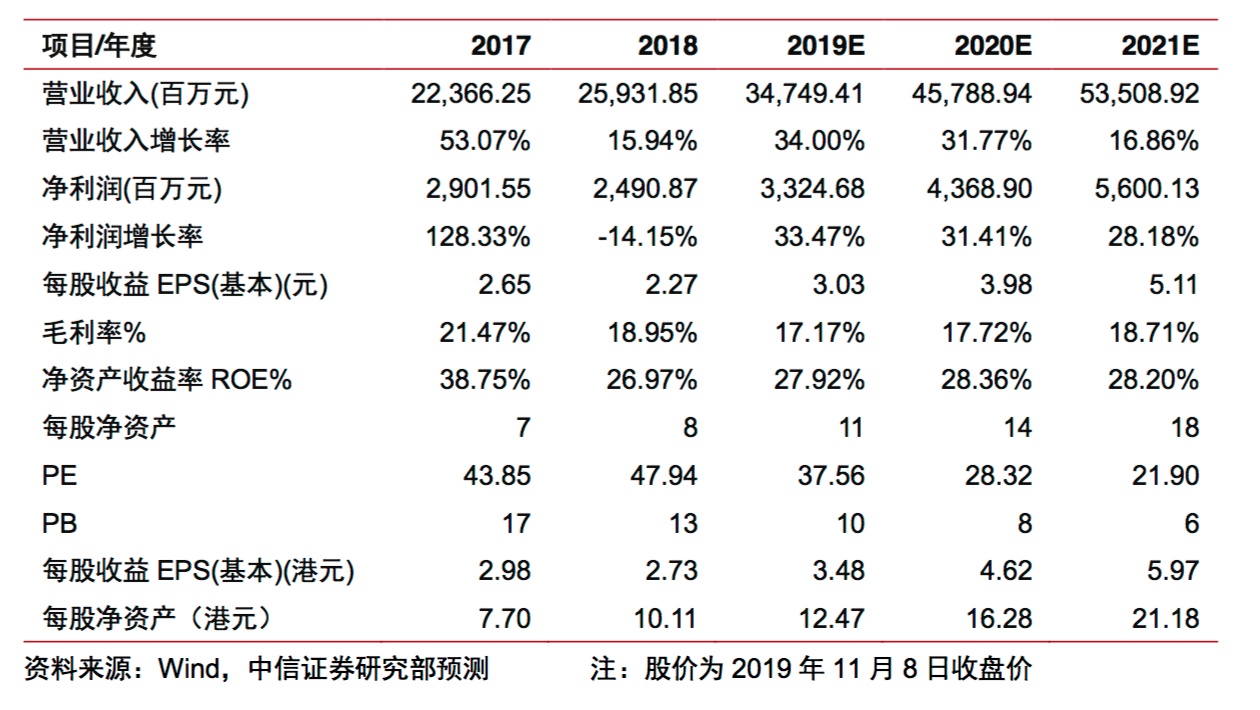 智通财经APP获悉,中信证券于昨日(11月11日)发布研报指出,舜宇光学科技(02382)10月手机镜头出货量同比增长42%,车载镜头出货量同比增长34.5%,其他光电产品出货量同比增长395.6%,数据同比增速亮眼,订单持续放量,并有望持续受益手机光学创新及汽车ADAS系统加速渗透。该行持续看好光学行业的升级前景以及舜宇光学科技的龙头地位,上调公司2019/2020/2021年EPS预测3.03/3.98/5.11元(原预测为3.01/3.63/4.38元),给予2020年35倍PE,对应目标价161.7港元,上调至“买入”评级。
