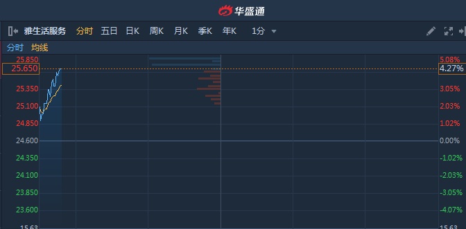 智通财经APP获悉,雅生活服务(03319)获野村列为行业首选,并认为公司是市场上保持长期资产管理规模等的先行者。截至9时47分,涨4.27%,报价25.65港元,成交额2411万。