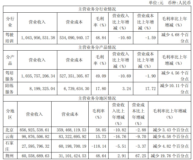事实上,A股也有一家以机动车驾驶培训为主营业务的的上市公司——东方时尚(603377.SH),东方时尚的主战场在北京,其在北京市占率为34%左右,虽然市占率还在增加,但是变化不大。2018年总营收10.4亿元,其中有8.6亿来自北京地区。除了北京,东方时尚还向云南、石家庄和荆州扩张。但是在这三个地方的经营规模远不如北京,并且毛利水平也和北京相去甚远。