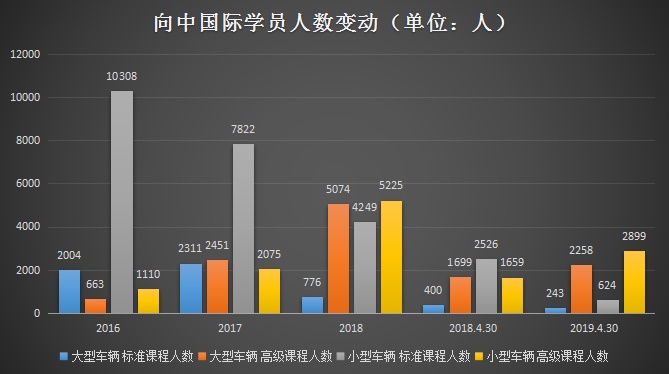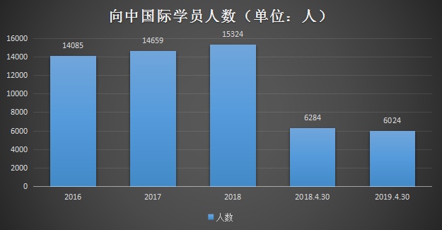 而向中国际学员人数的增长情况似乎就佐证这一观点。2016年至2018年,该公司学员人数的年复合增长率仅为4.3%,2019年前四个月甚至负增长4%。