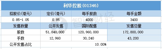 智通财经APP获悉,11月12日,利华控股(01346)配售结束。配售招股价区间为0.85-1.05港元,最终定价0.85港元,每手3400港元。