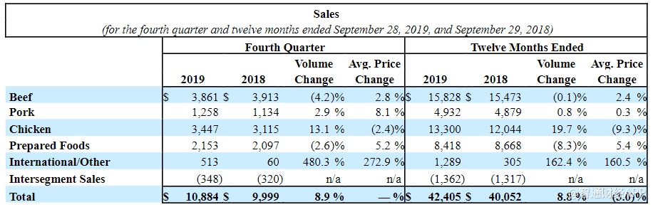 智通财经APP获悉,美国最大肉类加工商泰森食品(TSN.US)今日美股盘前公布了2019财年第四财季(Q4)以及全财年的业绩报告。