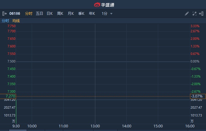 智通财经APP获悉,中国飞鹤(06186)首日挂牌,公告显示,公司发行10.27亿股,每股定价7.5港元,每手1000股,所得款项净额约65.64亿港元。截至发稿,跌3.07%,报7.27港元,成交额3.84亿港元。