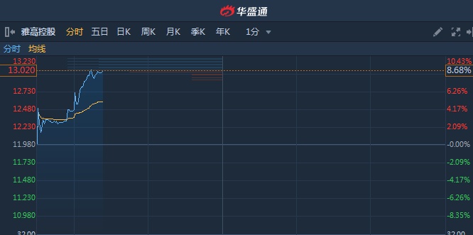 智通财经APP获悉,雅高控股(03313)获纳入MSCI中国指数后股价连续破顶,四日累计涨幅达100%,盘中高见13.06港元创新高,截至10时22分,涨8.68%,报价13.02港元,成交额5194万。