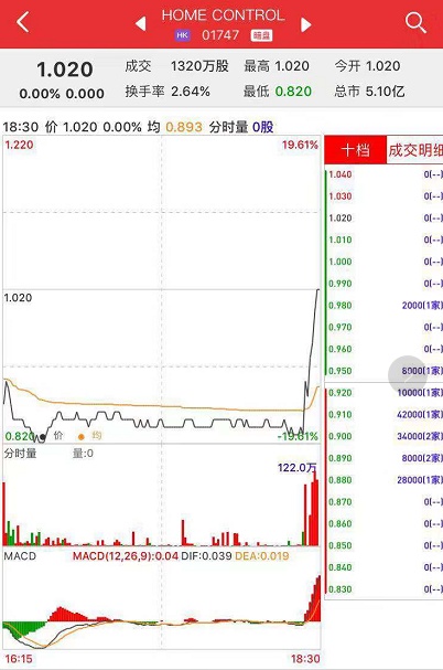 智通财经APP获悉,HOME CONTROL(01747)将于11月14日挂牌,该股暗盘尾盘拉升,最终平收。截至收盘,辉立证券暗盘交易显示其报价1.02港元,和招股价1.02港元持平。