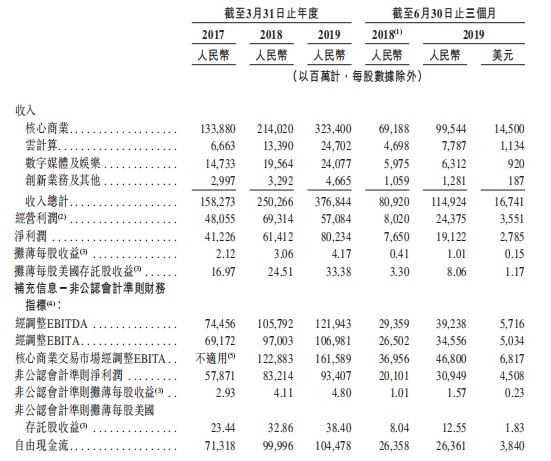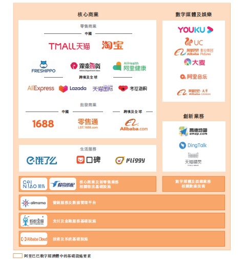 据招股书显示,阿里巴巴集团是一家于1999年6月28日在开曼群岛设立的有限责任公司,业务包括:核心商业、云计算、数字媒体及娱乐以及创新业务。除此之外, 阿里巴巴的非并表关联方蚂蚁金服为平台上的消费者和商家提供支付和金融服务。