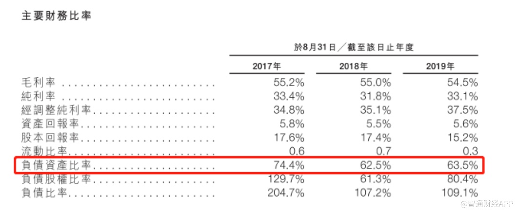 华立大学招股书显示,截止至8月31日年度,公司2017年、2018年、2018年负债比率分别达到204.7%、107.2%、109.1%;负债资产比例分别达到74.4%、62.5%和63.5%,负债率并不低。
