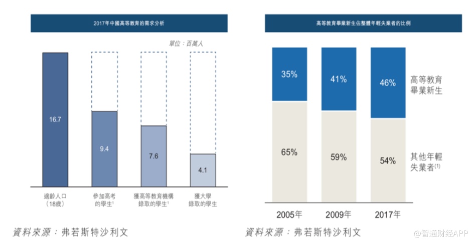 值得注意的是,中国高等教育毕业新生占整体失业者比例有所上升。据报告,2005年高等教育毕业生占整体失业比例仅为35%,而2017年该比例已提升至46%。这说明高等教育市场存在结构性发展机会,侧重实践技能培训的专科院校具有较好的发展前景。