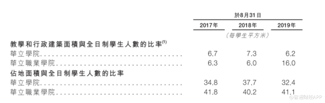 招股书显示,截至2019年8月31日年度,华立越远的教学和行政面积与全日制学生人数比率为6.2平方米/学生,并未达标。