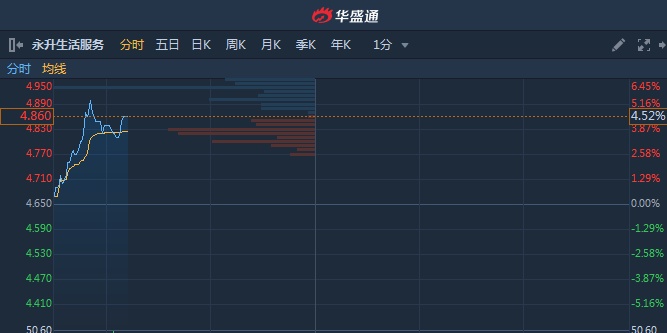 智通财经APP获悉,永升生活服务(01995)近日获野村列为行业首选,称公司有潜力成为下一个具多方质量增长的推动者。该股早盘一度急升逾5%,截至10时11分,涨4.52%,报价4.86港元,成交额1809万。
