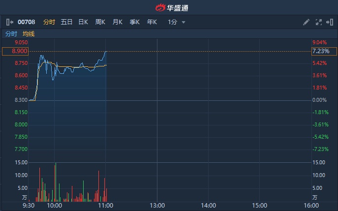 智通财经APP获悉,11月12日,恒大在广州举行恒大新能源汽车战略合作伙伴合作峰会。许家印表示,计划三年投资450亿元,恒驰1计划明年上半年亮相,计划在2021年量产。恒大健康(00708)早盘续涨超7%,截至发稿,涨7.23%,报8.9港元,成交额1848.46万港元。