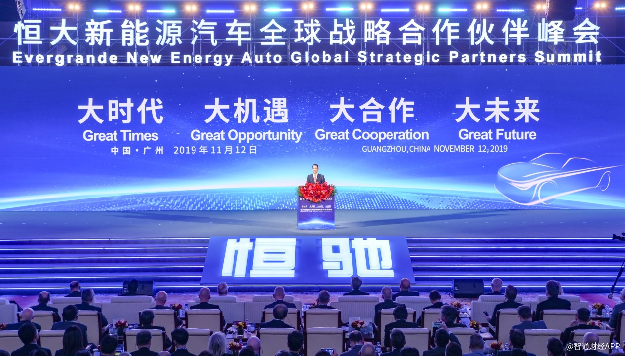 11月12日,恒大新能源汽车全球战略合作伙伴峰会在广州召开,广州市市长温国辉、恒大集团董事局主席许家印,以及206家世界汽车产业龙头企业的CEO及高管1100多人出席峰会。