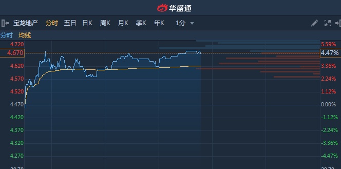 智通财经APP获悉,宝龙地产(01238)获主要股东蓝天连续增持,共涉及555万股,平均价格分别约为每股4.52港元、4.73港元。消息大幅提振市场信心,盘中止跌反弹。值得一提的是,该股此前四个交易日,累计跌幅达17.83%。