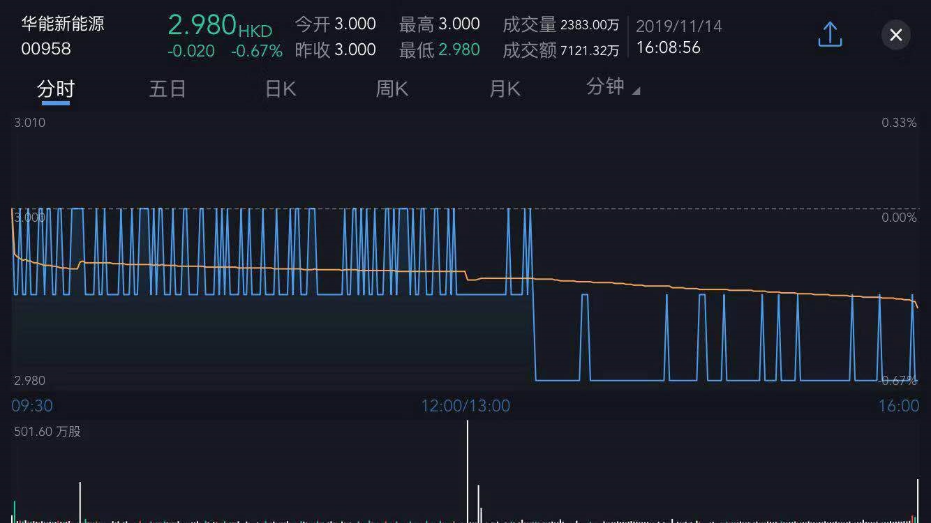 截至今日收盘,华能新能源(00958)跌0.67%,报2.98港元。