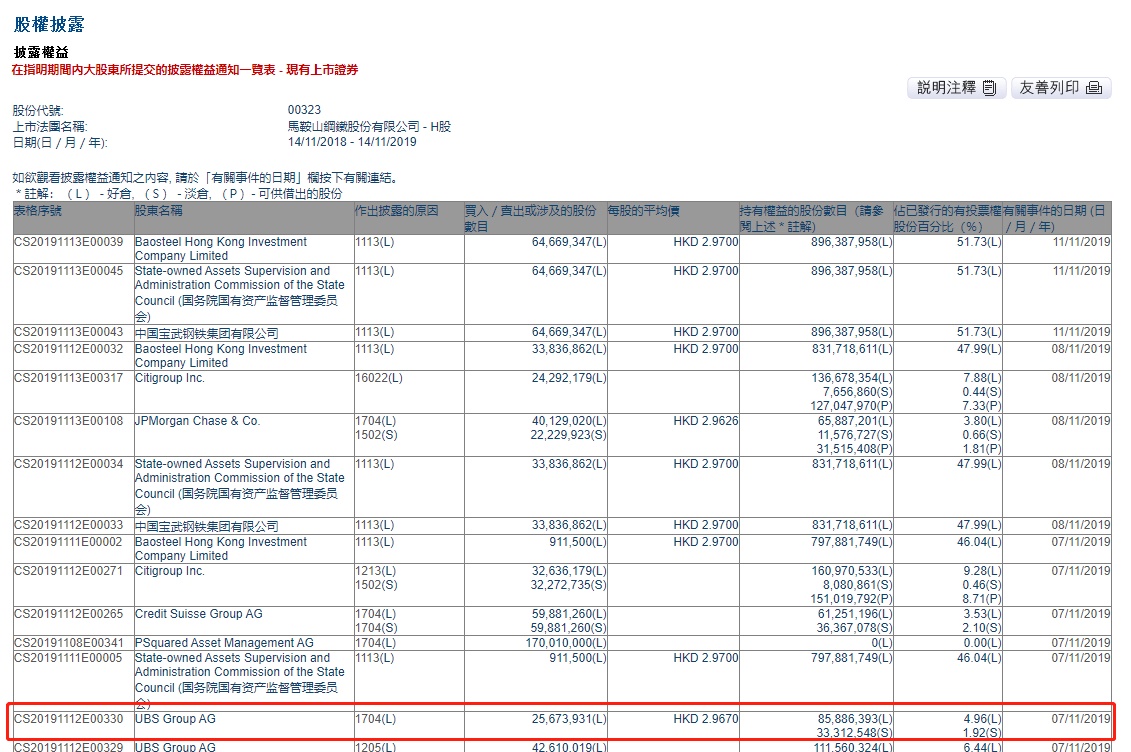 智通财经APP获悉,联交所最新资料显示,11月7日,瑞银减持马钢股份(00323)2567.39万股,每股作价2.967港元,涉及总金额约为2567.39万港元。减持后最新持股数目约为8589万股,最新持股比例为4.96%。