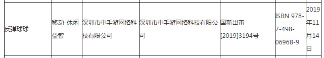 智通财经APP获悉,11月14日,原国家新闻出版广电总局官方显示,11月第二批国产游戏版号名单更新,有45个游戏获批,审批时间为11月14日。其中中手游(00302)的《反弹球球》等游戏获得版号。