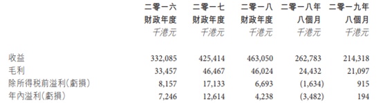 于相同期间,公司净利润为724.6万港元、1261.4万港元、423.8万港元和19.4万港元。净利润由2017财政年度的1261.4万港元减少至2018财政年度的423.8万港元,主要由于非经常性开支增加610万港元及行政开支增加280万港元。