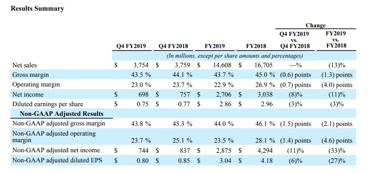 智通财经APP获悉,美东时间11月14日美股盘后,材料工程解决方案公司应用材料(AMAT.US)公布了2019财年第四季度和全年业绩报告,报告显示,应用材料本季度的总收入为37.5亿美元,基本与去年同期持平。