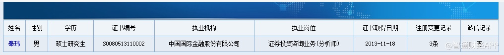 智通财经APP亦在中国证券协会官网上查询,奉玮的执业机构仍显示的是中金公司。