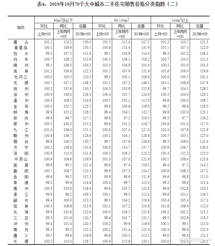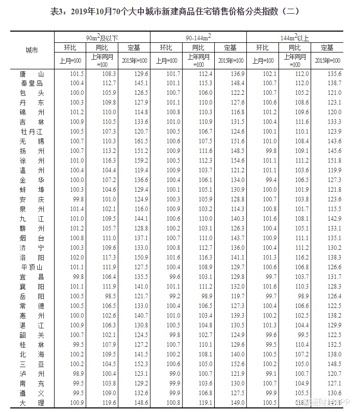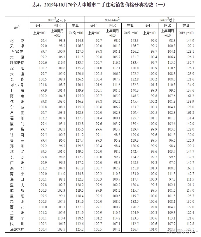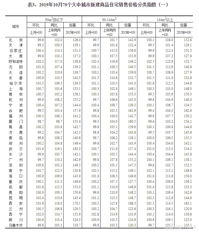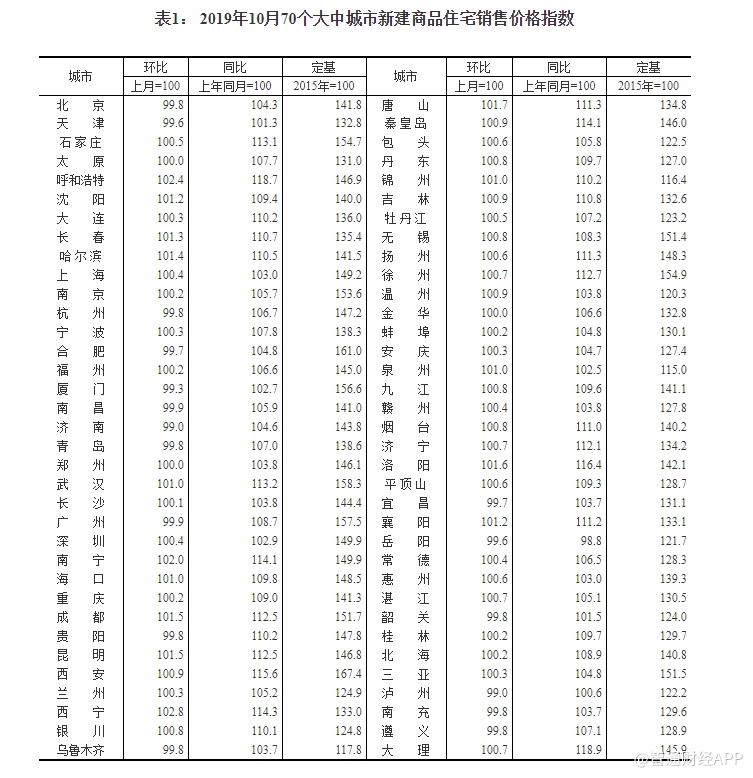 智通财经APP获悉,国家统计局今日(11月15日)发布了2019年10月份70个大中城市商品住宅销售价格变动情况统计数据。