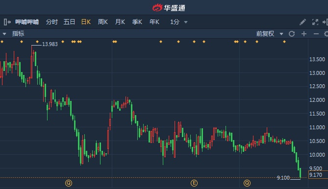 智通财经APP获悉,呷哺呷哺(00520)暂现五连阴,累计跌幅达13%,盘中低见9.07港元,创两年新低。截至10时07分,跌2.97%,报价9.16港元,成交额639.6万。