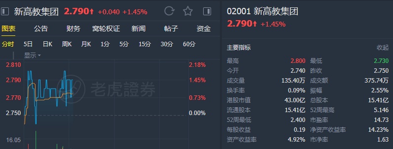 该行表示,基于新高教的增长和有吸引力的估值,股票出售带动的股价下挫也为投资者提供了入场机会。该行表示,对新高教2020财年的核心每股盈利预测保持不变,维持其“买入”评级,目标价4港元。