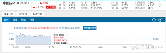 这则公告发布后,市场受该利好影响,公司股价出现高开高走,早盘最高涨幅达6.79%,突显出投资者对中国抗体的看好。