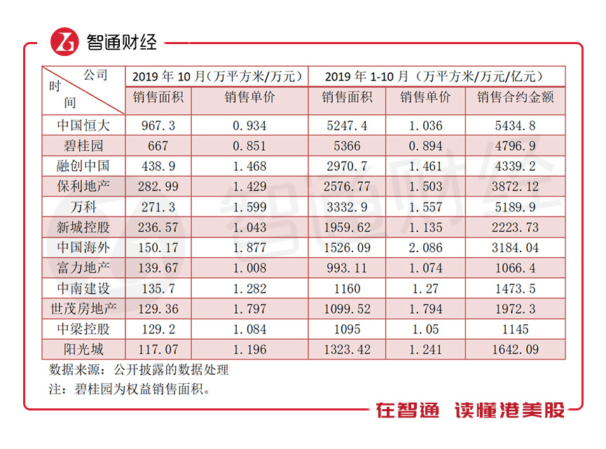 智通财经APP抽出了10月份销售面积在100万平方米以上的12家地产公司作为案例进行分析研究。