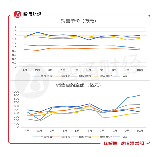 当然,地产行业不能仅仅看量,价格也是非常重要的指标,下面我们将具体分析各大地产公司在10月份和首十个月的量价表现,特别是稳居前五名的龙头地产公司,看看行业目前的状况以及前景。