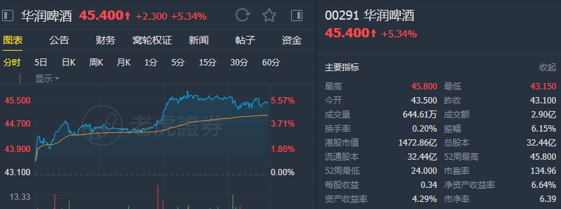 另外,该行引述润啤管理层称,目标争取盈利持续增长,而非以牺牲盈利为目的达到扩大市场份额,公司拒绝评论短期加价的可能性。该行表示,维持华润啤酒“买入”投资评级。
