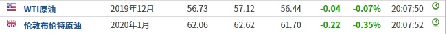 截至发稿,WTI原油跌0.07%,报56.73美元/桶。布伦特原油跌0.35%,报62.06美元/桶。
