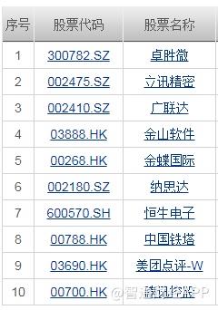 从市场配置来看,华夏移动互联混合(QDII)将美股持仓比例降至1.89%,A股持仓比例提升至54.62%,港股为23.54%,主要仓位集中在信息技术领域,占比高达63.99%。截至三季度末,该基金十大重仓股如下: