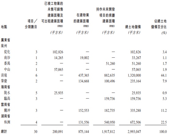于估值日期,公司的物业组合拥有30个物业项目分期,分布于十个地点,公司应占的建筑面积合共约为300万平方米,包括建筑面积合共约20万平方米的可供出售或出租的已竣工物业、建筑面积合共约为90万平方米的在建物业及建筑面积合共约为190万平方米的持作未来开发物业。
