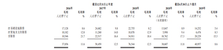 截至2016年、2017年及2018年12月31日止年度以及截至2018年及2019年前6个月,该公司收益分别为人民币3.27亿元、人民币4.68亿元、人民币6.12亿元、人民币3.28亿元及人民币4.76亿元。主要通过为科技、媒体及通信、制造、金融服务以及运输及物流等各行各业的客户提供IT基础设施服务、IT实施及支持服务和云服务而产生收益。
