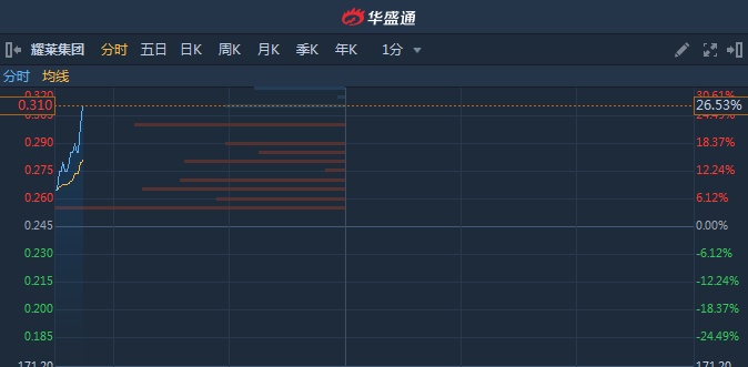 智通财经APP获悉,耀莱集团(00970)发盈喜,中期股东应占纯利预将大幅增加,早盘股价快速走高,截至9时43分,涨26.53%,报价0.31港元,成交额187万。