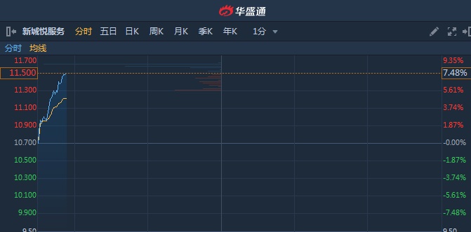 智通财经APP获悉,新城悦服务(01755)于上周五(11月15日)公告称,决议采纳股份奖励计划,早盘股价急升,高见11.5港元,刷新历史新高。截至9时52分,涨7.48%,报价11.5港元,成交额1080万。