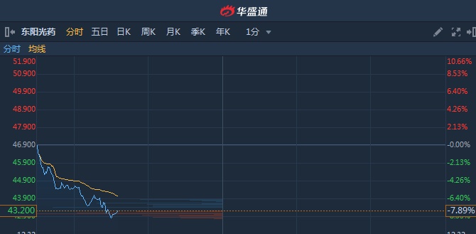 智通财经APP获悉,近日,东阳光药(01558)拟20.57亿元收购两种治疗2型糖尿病的药品,糖尿病用药却遭医保谈判大杀价。拖累股价早盘急挫,截至10时34分,跌8%,报价43.15港元,成交额1.001亿。
