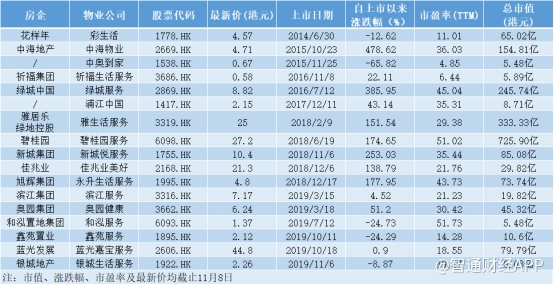 智通财经APP梳理得知,截至目前已有17家物业管理公司在港上市,包括彩生活(01778)、中海物业(02669)、中奥到家(01538)、绿城服务(02869)、祈福生活服务(03686)、浦江中国(01417)、雅生活服务(03319)、碧桂园服务(06098)、新城悦服务(01755)、佳兆业美好(02168)、永升生活服务(01995)、滨江服务(03316)、奥园健康(03662)、和泓服务(06093)、鑫苑服务(01898)、蓝光嘉宝(02606)、银城生活服务。而在A股上市的物业管理公司仅两家——南都物业和中航善达。