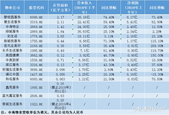 从时间线上来看,物业管理公司赴港上市主要集中于2018年和2019年,2018年总共有5家物业管理公司上市,2019年目前已有6家在港上市,同时今年还有保利物业、兴业物联、正荣物业、烨星控股、建业新生活、时时服务及华发物业7家物业管理公司正在排队当中。