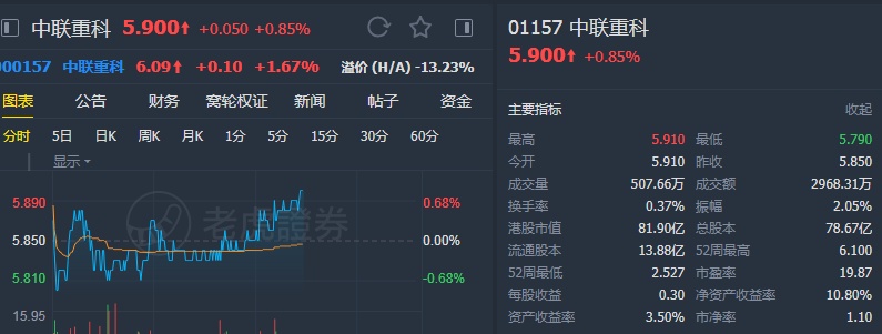 智通财经APP获悉,野村发布报告称,中联重科(01157)上周五(15日)公布核心经营管理层持股计划。该行认为,此举反映管理层对公司长远发展的信心,并可缓和市场对需求减弱的忧虑,可被视为股价催化剂,维持对中联重科的“买入”评级及目标价6.8港元不变。
