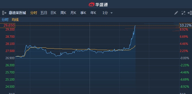智通财经APP获悉,康德莱医械(01501)获UBS Group增持27.98万股,涉资776.57万港元。该股午后急升10%,截至14时30分,涨10.04%,报价29.6港元,成交额2692万。
