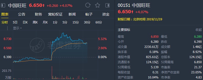智通财经APP获悉,大摩发布报告称,中国旺旺(00151)2019财年上半年的销售为93.04亿元人民币,同比增长1%,符合市场预期。净收益16.14亿元人民币,同比增长18%,表现优于市场预期。该行表示,预计公司2019至2021财年的年复合增长率为6%,目标价是6.5港元,投资评级为“与大市同步”。