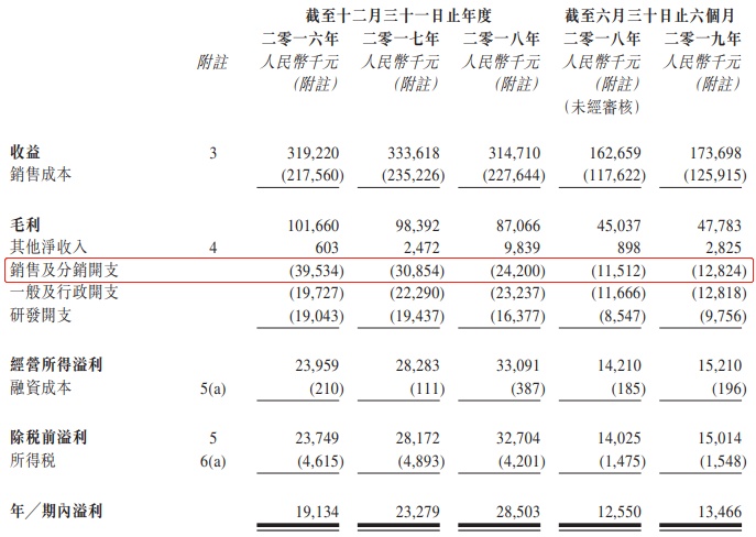 不仅收入增长不稳定,毛利率也逐渐下降,从2016年的31.8%下降至2019上半年的27.5%。在招股书中也提到毛利率下降的理由,一来泰乐玛向主要客户宇通客车(600066.SH)提供更具竞争力的价格,二来某些产品的销售价格在下降。