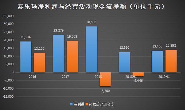 开源节流是自古以来的生财之道,节流给泰乐玛带来了账面利润的增长,却不能确保现金流也同样增长。从下图可以看到,泰乐玛的经营活动现金流净额波动大,并且仅在2019上半年经营现金流大于净利润。通过观察现金流量表,现金流主要被应收应付款项“吃掉”。
